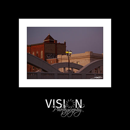 Enjoy a periwinkle sky at dusk over Galt's historical Main Street Bridge.